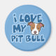 I Love my Pit Bull gifts for dog lovers! Cute kawaii cartoon design has a drawing of the dog breed's head on the right, surrounded by super fat blue text. Excellent American Pit Bull Terrier products for pet owners who adore this breed.