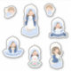 Adorable sticker sheet featuring kawaii Virgin Mary of the Immaculate Conception in different artistic poses. A sweet devotional collection blending spirituality and cuteness, perfect for faith inspired gifts, journals, and crafts.
