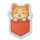 This adorable die-cut sticker features a smiling orange tabby kitten peeking out from a bright red pocket. With its big happy eyes and cartoon charm, this cute cat is perfect for decorating laptops, journals, phone cases, or planners. A must-have for cat lovers and fans of kawaii style!