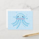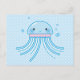 Cute floating blue jellyfish in kawaii style with bubbles.