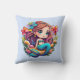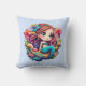Kawaii mermaid with blue fishtail pillow cushion