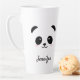 Cute panda black and white personalised latte mug. Pretty chubby kawaii panda face with pink cheeks. Easily add your name to personalise the mug. Lovely gift for a girl, a daughter, girlfriend on a birthday or other special occasion. Two sided image, on each side of the mug.