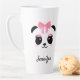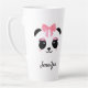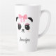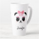 Cute panda with eyelashes personalised latte mug. Pretty chubby kawaii panda face with pink cheeks and eyelashes. Easily add your name to personalise the mug. Lovely gift for a girl, a daughter, girlfriend on a birthday or other special occasion. Two sided image, on each side of the mug.