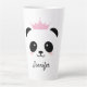 Cute panda queen personalised latte mug. Pretty chubby kawaii panda face with pink cheeks and pink crown. Easily add your name to personalise the mug. Lovely gift for a girl, a daughter, girlfriend on a birthday or other special occasion.