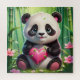 Kawaii Panda Holding Heart in a Bamboo Forest Jigsaw Puzzle
