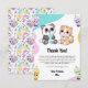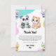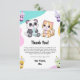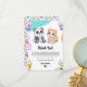 This sweet baby panda and baby tiger are enjoying some bubble tea for this whimsical kids birthday party thank you note.