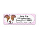 These adorable American Pit Bull Terrier address labels have a pink chequered background. A cartoon Pit Bull is on the right, and you can instantly personalise the name and address found on the right. Very cute pet lover products at Menagerie Mayhem.