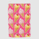 Waffle cones with strawberry ice cream scoops and frozen yogurt pattern