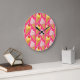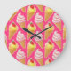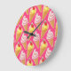 Kawaii pink pattern with strawberry ice cream large clock