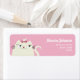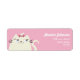 Cute, girly, cartoon, kawaii cat with bow pink return address label.