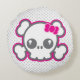 Cute and fun Kawaii Pink Ribbon Skull Round Pillow. Great for Halloween or everyday.