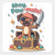 Set sail for adventure with this adorable Kawaii Boxer pirate sticker! This playful pup is dressed to impress, sporting a striped bandanna, a cheeky eye patch, and holding a toy sword. The proud pirate Boxer stands atop a treasure chest brimming with colourful candy and shiny gold coins, surrounded by sparkles and stars. The whimsical phrase "Ahoy, Paw-mate!" in a fun pirate-style font completes the scene, all brought to life with soft pastel tones of aqua, coral, and yellow.