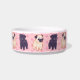 This is a heavy, durable bowl decorated with Tibbies of many colors, the perfect size for hungry/thirsty Tibs. The design is interesting and printing clear.