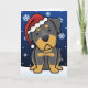 Send Rottweiler Christmas Cards to all the dog lovers this year! A cute kawaii rottie cartoon sits upon freshly fallen snow wearing a Santa cap, while snowflakes drift gently down all around him. The inside also has snowflakes and reads, "Happy Holidays!" You can customise the text to any message.