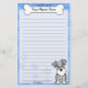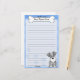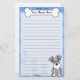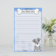 Colourful Kawaii Schnauzer stationery with a cartoon dog breed in the lower right corner. The top portion can be instantly personalised with your name inside the big doggie bone. Border and paper background are blue.