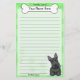 Colourful Kawaii Scottie stationery with a cartoon black pooch in the lower right corner. The top portion can be instantly customised with your name inside the big doggie bone. Border and paper background are green.