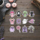 You'll find charming characters like a tiny Grim Reaper, a sweet pink devil, a cute little zombie, and a black bat-cat, alongside mystical icons like a spell book with a pentagram, a ghost with a wand, a witch hat, a cauldron, and a spooky cemetery gate. These high-quality vinyl decals are perfect for decorating laptops, journals, water bottles, or for adding a touch of kawaii gothic style to any item.