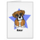 Cute cartoon Boxer shirts and gifts have a Kawaii drawing of the dog breed in the centre, sitting nicely. Behind him is a giant blue star, and below is the breed name. Adorable Boxer products! In the fawn coat with black mask.
