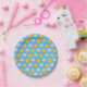 Repeat pattern of happy suns and sad rain clouds on a blue sky background for changeable springtime weather.