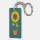 An illustration of a happy kawaii sunflower plant in an orange pot. This cute cartoon smiley flower design is a gift idea for nature lovers, kawaii lovers and floral lovers.