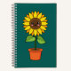 An illustration of a happy kawaii sunflower plant in an orange pot. This cute cartoon smiley flower design is a gift idea for nature lovers, kawaii lovers and floral lovers.
