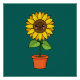 An illustration of a happy kawaii sunflower plant in an orange pot. This cute cartoon smiley flower design is a gift idea for nature lovers, kawaii lovers and floral lovers.