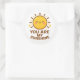 A bright and cheerful kawaii sunshine with a happy smiling face, pink blush, and sparkles. Designed in a vibrant, glossy style that stands out beautifully on planners, journals, laptops, water bottles, and gifts. A warm and uplifting sticker perfect for everyday positivity.