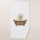 Kawaii Teddy Bear Towel featuring sweet kawaii-style bear relaxing in a warm bubble bath inside a vintage bathtub, surrounded by foam, floating bubbles, and small rubber ducks. Soft pastel colors and charming cartoon style make this towel perfect for your kids.