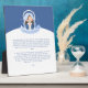 Sweet kawaii Virgin Mary of the Immaculate Conception, praying with a flower in her hands and an editable banner. Includes customisable prayer text below. A tender Catholic devotional plaque, perfect for gifts and keepsakes.