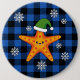 Kawaii Xmas Starfish on Blue Buffalo Pattern 6 Cm Round Badge