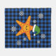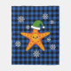 Kawaii Xmas Starfish on Blue Buffalo Pattern Fleece Blanket