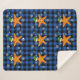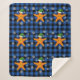 Kawaii Xmas Starfish on Blue Buffalo Pattern Sherpa Blanket