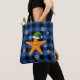 Kawaii Xmas Starfish on Blue Buffalo Pattern Tote Bag