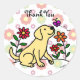 Kawaii Yellow Labrador Cartoon Floral Classic Round Sticker