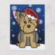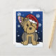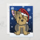 Send Yorkshire Terrier Christmas Postcards to all your animal-loving friends this year! A cute kawaii yorkie cartoon sits upon freshly fallen snow wearing a Santa cap, while snowflakes drift gently down all around him.