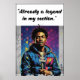Bold street-art style poster inspired by Kay Flock, featuring the quote “Already a legend in my section.” Designed with vibrant colors, geometric textures, and a gritty urban vibe, this artwork represents confidence, reputation, and owning your space.