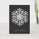 Kayak Christmas card; Let it snow! White snowflake kayak design on black background. Stylised.