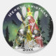Kayak Christmas Tree under the Aurora Borealis Classic Round Sticker