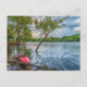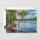 Thinking of you postcard featuring a red kayak floats close to shore near a cute little crooked tree on a cloudy summer morning in Oak Grove Arkansas, United States on Table Rock Lake. Looking for more prints or products? Feel free to visit my store: http://www.zazzle.com/timelessmomentsphtgy