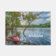 A welcome mat featuring a red kayak floats close to shore near a cute little crooked tree on a cloudy summer morning in Oak Grove Arkansas, United States on Table Rock Lake. Looking for more prints or products? Feel free to visit my store: http://www.zazzle.com/timelessmomentsphtgy