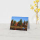 Kayak on a pond in autumn, scenic, blank note card. The shore is lined with beautiful fall foliage in this sunny, seasonal photography print.