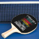 Overall, it's a nice product but for what you pay the quality isn't very good. The way it's glued together, as you can see in the pictures, is messy, the glue is visible and shiny, there's some ink staining that looks like black fluff but isn't, it won't come off. On the paddle's black surface there are also little white marks here and there. It's not too easy to show in the pictures because of the flash but I tried to showcase the little white blemishes that ruin a smooth black surface. This was meant to be a gift and it just looks sloppily put together unfortunately. A few imperfections that mar what could have been really great. The printing was neat.