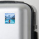 Magnet with an illustration of a man kayaking in the ocean by the snow topped mountains. Pretty serene blue tranquil water and pine trees surround him on a peaceful journey.