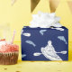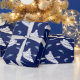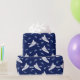This wrapping paper is perfect for wrapping up kayaking gear or other gifts for your favourite kayaker. It features a pattern of kayakers in kayaks in white with some jumping fish in light blue set against a navy blue background.