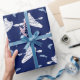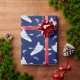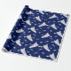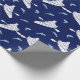 Kayaks and Fish Navy Blue and White Patterned Wrapping Paper