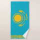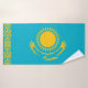 The Kazakhstan flag is a blue field with in the centre a sun and an eagle and on the a national ornamental pattern. The used colours in the flag are blue, yellow. The proportion of the Kazakhstan flag is 1:2. The Flag of Kazakhstan was adopted in 1992. The first use of the current flag design was in 1992. The last change to the current Kazakhstan flag design was in 1992.