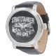 This is a Men's Vintage Black Leather Strap Watch eWatch Watch of KC-135 Stratotanker. KC-135 Stratotanker is a military aerial refueling aircraft.