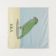An illustration of a kea. This bird is the world's only mountain parrot. They are curious, New Zealand birds. This design has a simple vector kea on a blue background.
