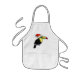 This apron is made with a durable fabric! My grandson LOVES it! The shape provides great coverage to protect clothes from paint spatters, etc. The print quality is excellent! The detailed lines of the dragon drawings are printed in a crisp, clean manner.