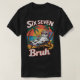 I give wanted to give this a 4 instead of a 5 because these Basic DARK T0shirts run unexpectedly SLIM or Narrow. Which is great if you do not have a potbelly, but I have a paunch. It isn't the shirt's fault that I've got a beer belly. The design and shirt itself is a quality cotton shirt. The color is more of a deep purple, but still a very pretty color. The Basic DARK T-shirts run a bit SLIMMER than the Basic Ts. The neck is a fraction narrower (or seems to be narrower) also. I'm a paunchy middle-aged woman and my neck is 12 inches (31cm) thick and the neckline fell about the same as in the photo of the man, and I had the desire to tug it a bit. So if you're a thick necked man or like loose shirts, be aware these are slimmer shirts. Once I get rid of my lockdown paunch it'll look great. The shirt washed well in cold water with no apparent bleeding. We don't have a dryer, so it hung dry. Did not shrink. Love the colors and the design. The design looks smaller on my shirt than it does on the model on-line. But still, it looks good on the shirt. The printing looks as it does on the model, just the size seems fractionally smaller. Washed garment in cold water, hung dry and design appeared unaffected.